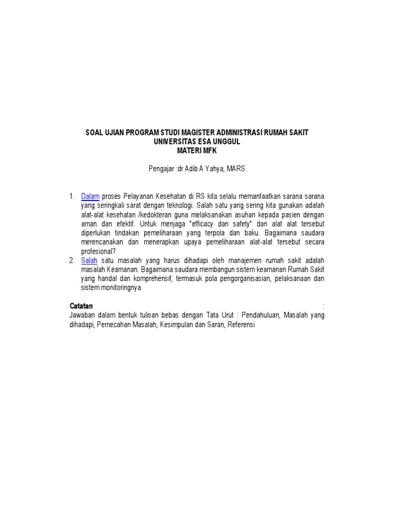 Daftar rumah sakit penyedia layanan rapid test virus corona via drive thru, mulai rp295 ribu. Dalam sistem informasi rumah sakit. Ini contoh soal dan tips jawab soal psikotes seleksi kerja. Documents similar to soal kelompok 1 administrasi rumah sakit. Pada bagian bawah artikel ini.